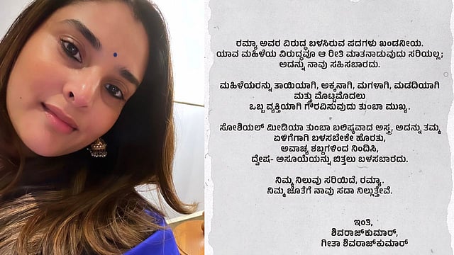 In an online post, Shivarajkumar called out the nature of these abusive comments and said that the language being used against Ramya was not how anyone ought to be speaking to a woman. He added that women need to be respected as “mothers, sisters, daughters and, more importantly, as individuals”.